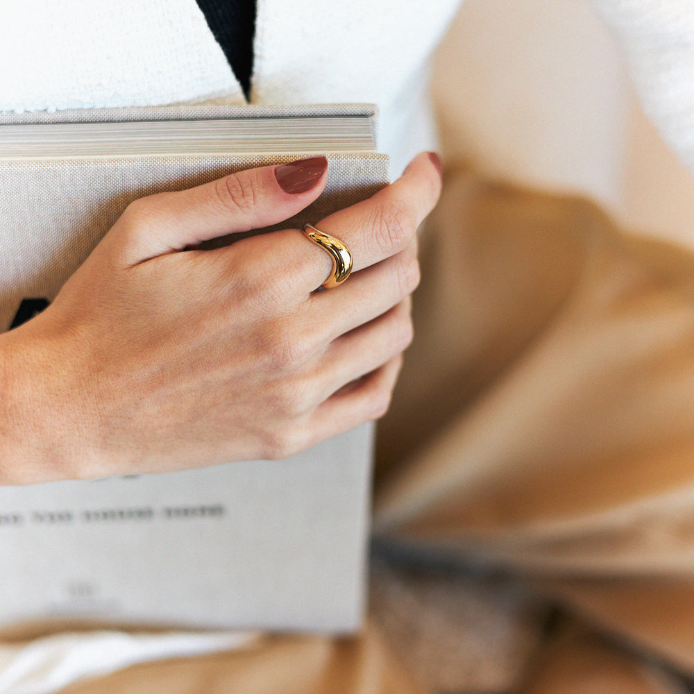 - Anel feminino dourado orgânico.