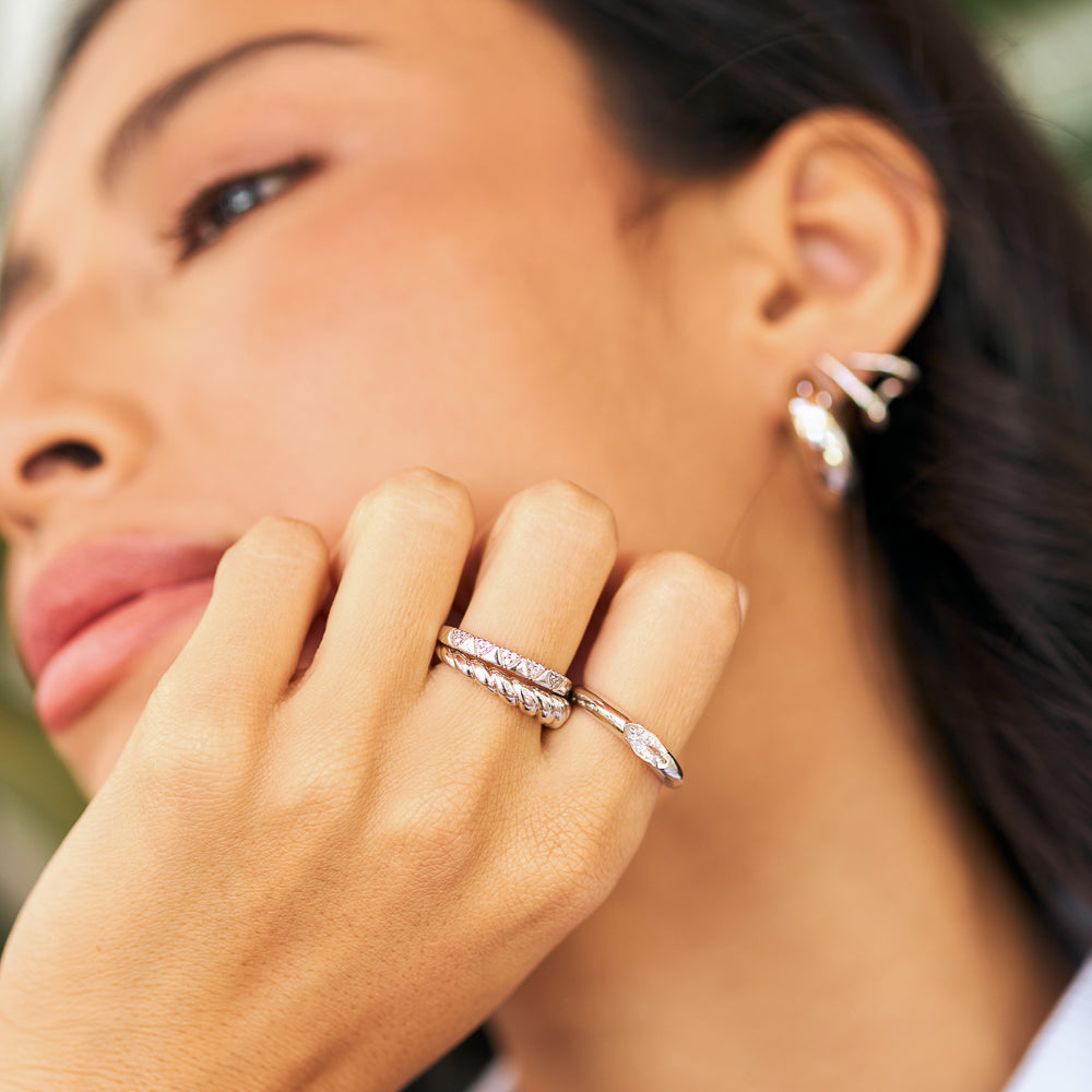 - Anel feminino prata torcido.
