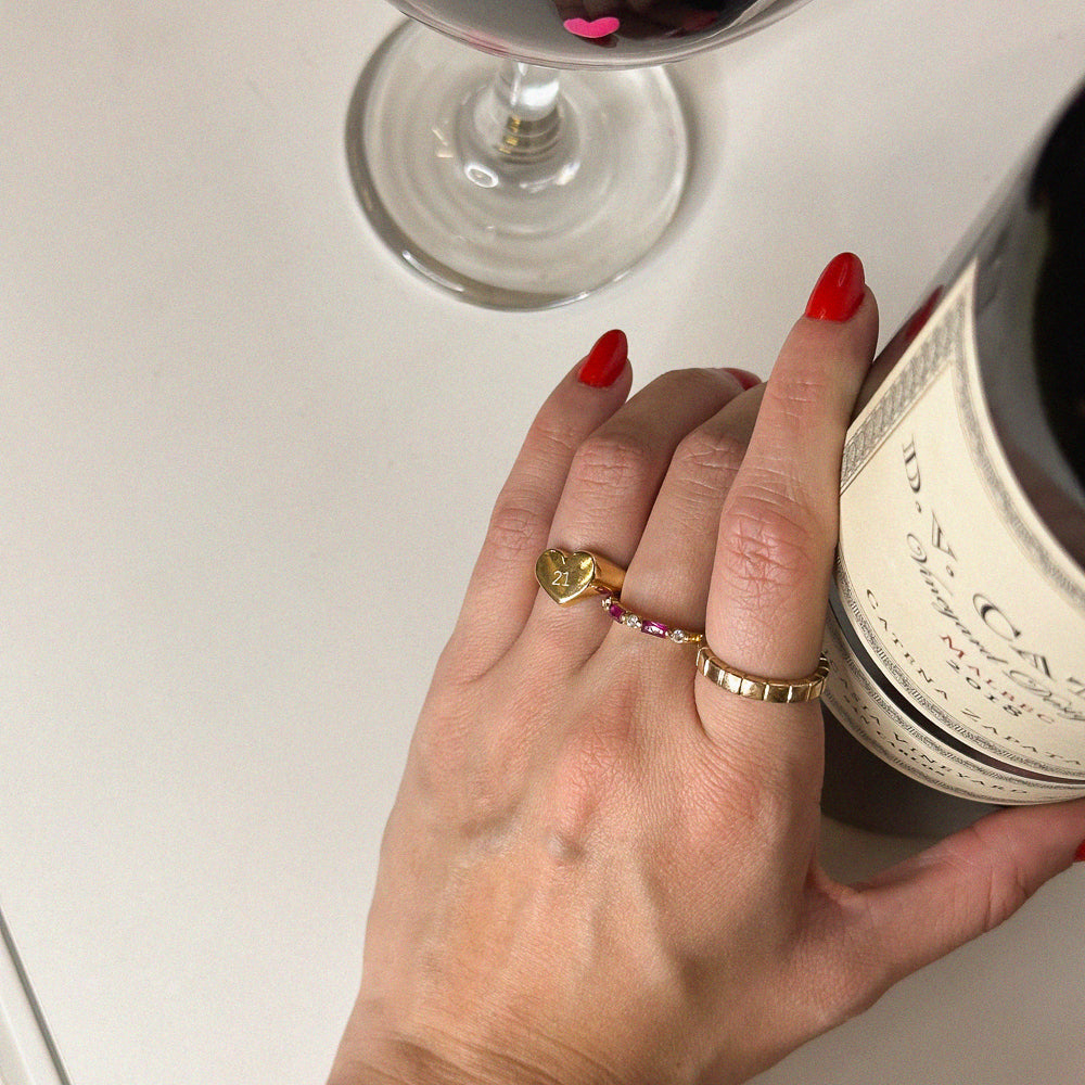 O anel que é simplesmente a representação de herança da família! Modelo muito refinado com 4 zircônias cravejadas no tom rosa intercaladas por 5 zircônias cristais. É o anel com mais cara de joia da coleção Ciao, Bella. Consulte a tabela de medidas no destaque do Instagram ou no rodapé do site para encontrar o tamanho ideal. Se você já usa anel de outra marca, o tamanho provavelmente será o mesmo :)