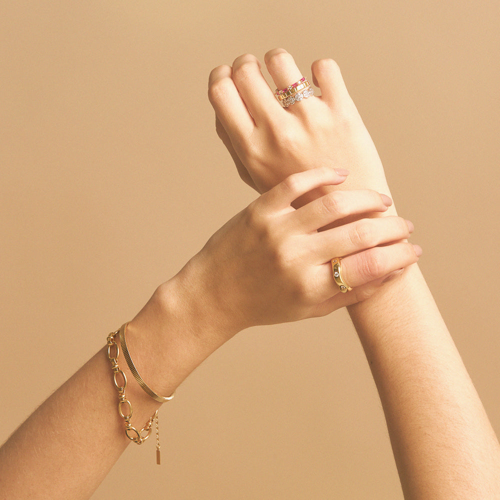 O banho de ouro da CUFF é acima da média do que se encontra no mercado brasileiro de acessórios. Além de utilizarmos a quantidade máxima de camadas de ouro, as peças possuem design e brilho únicos.