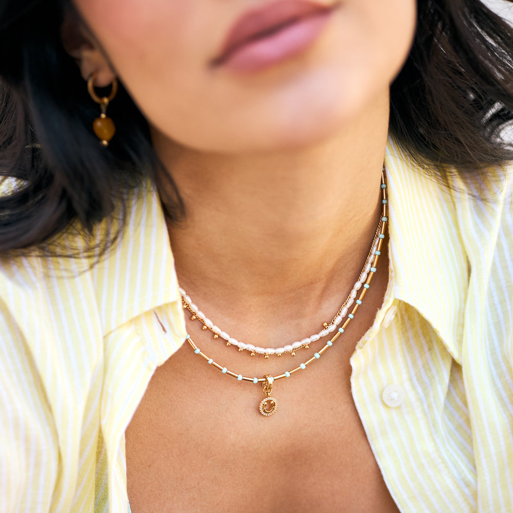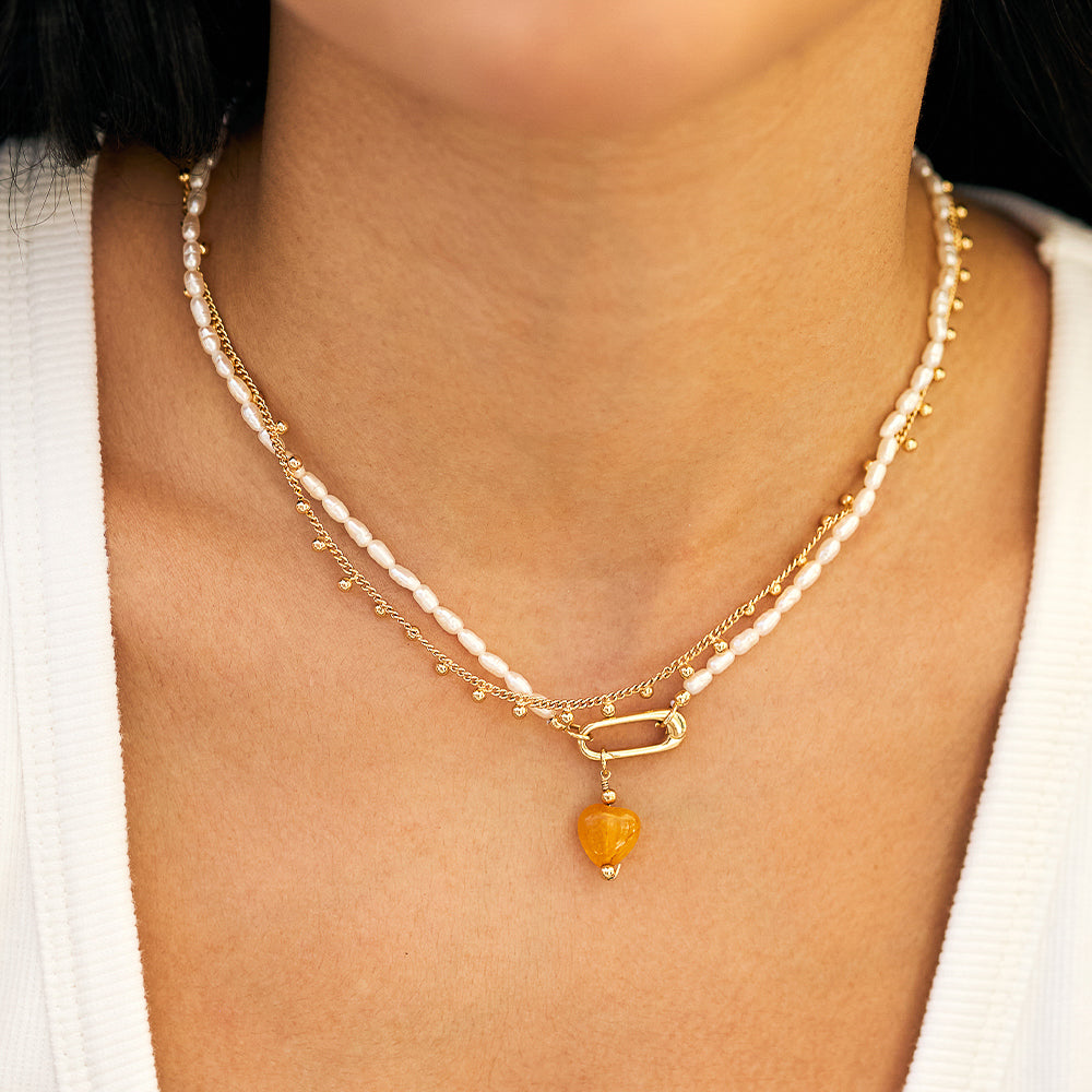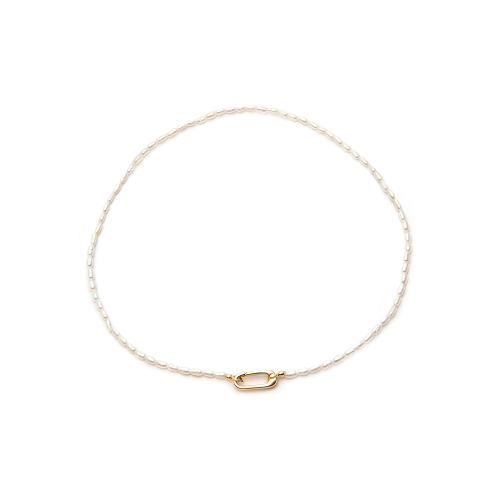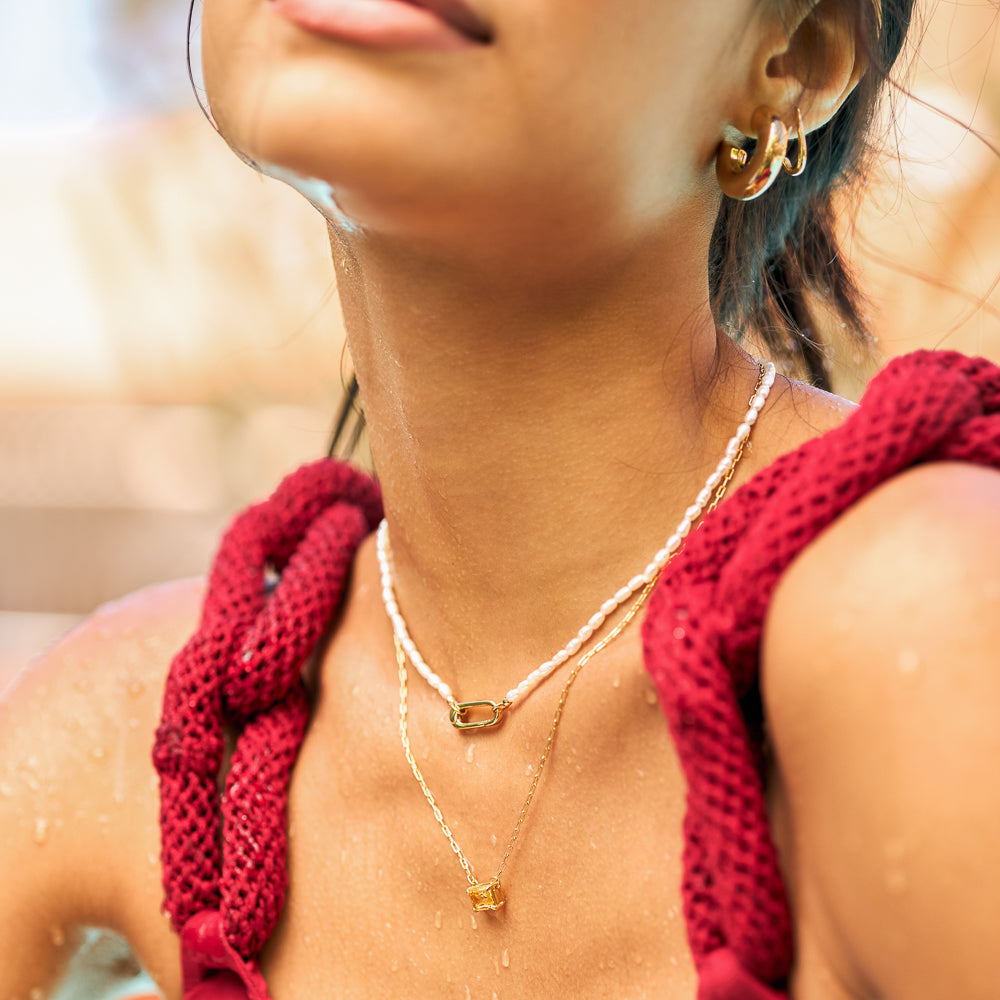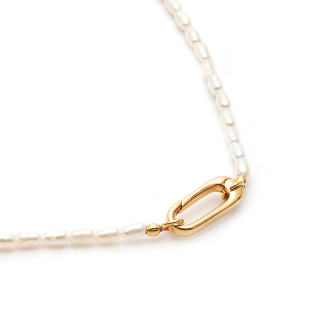 - Colar feminino dourado com pérola natural.