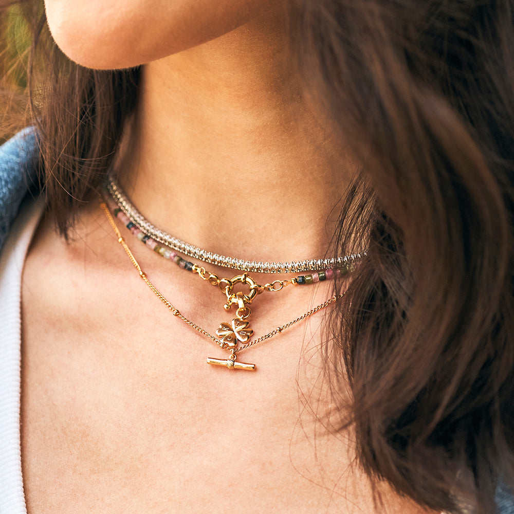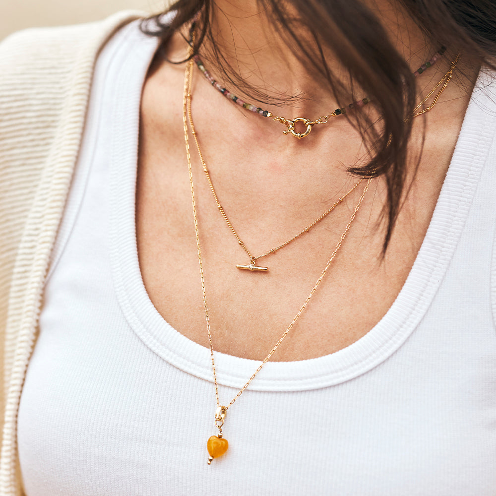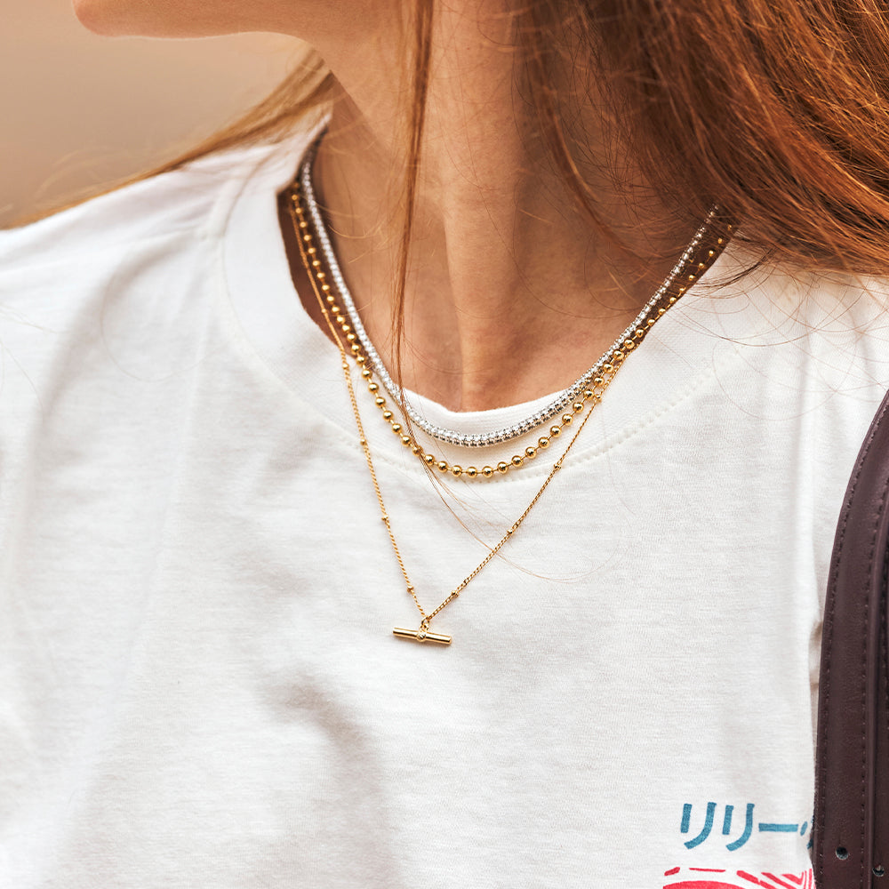 - Colar feminino dourado de corrente de bolinhas.