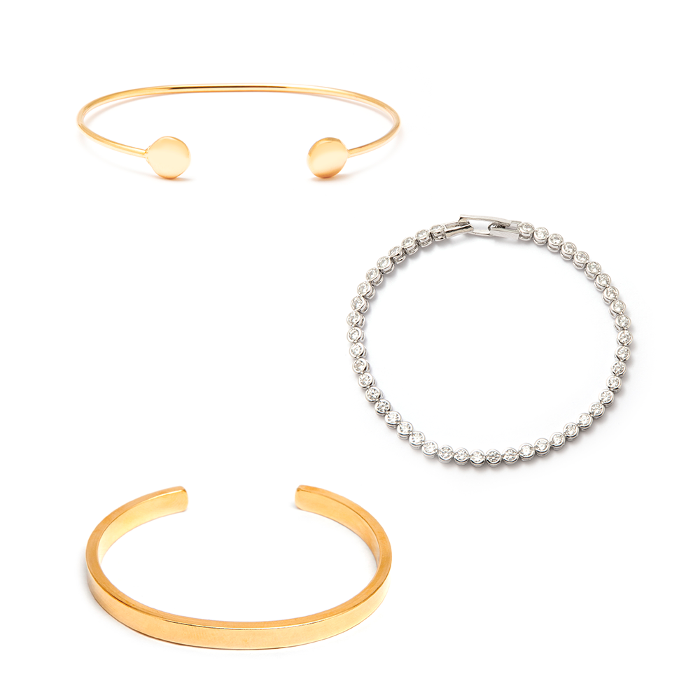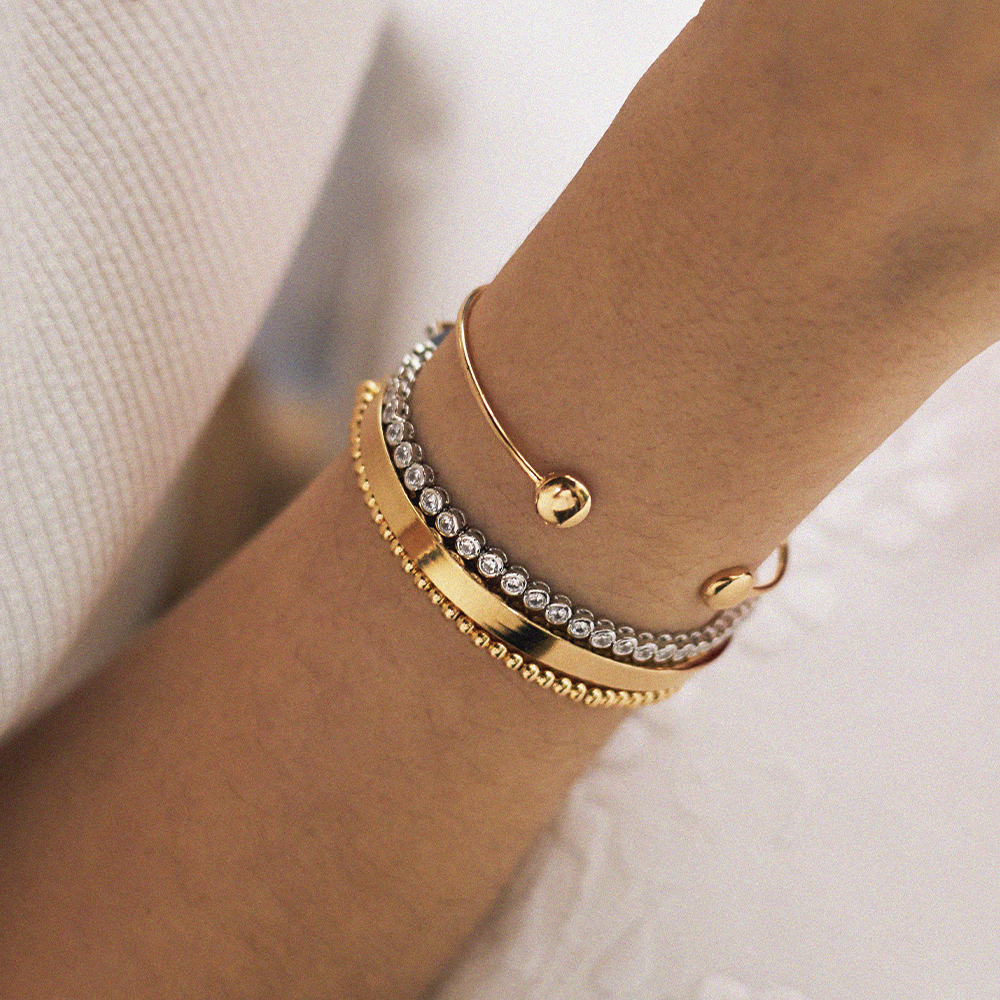 Todas as CUFFs possuem banho de ouro 18k ou ródio branco.