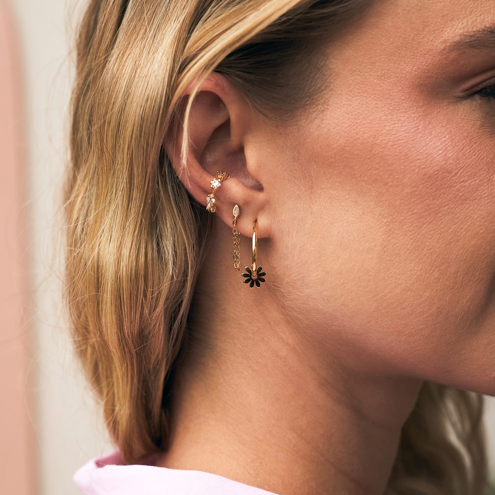 Super fofo, ele é ótimo para combinar com qualquer outro brinco! O formato da cravação lembra uma flor, use sozinho para ter um look mais romântico ou aposte com o Piercing Gou! Você vai arrasar.