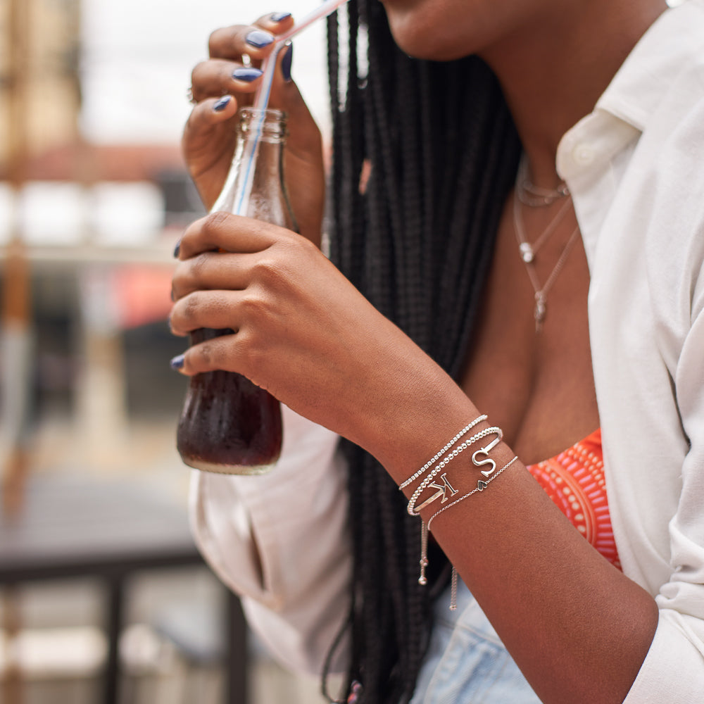 - Pulseira feminina prateada. Modelo de bolinhas, super versátil e fofo.