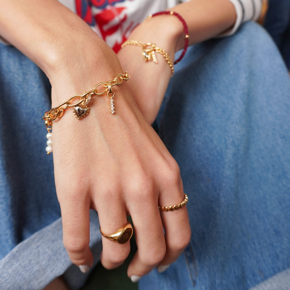 Pulseira com estética refinada e perfeita para combinar com braceletes. Ótima opção de presente também. Fecho prático que pode ficar à mostra por ser super bonito também.